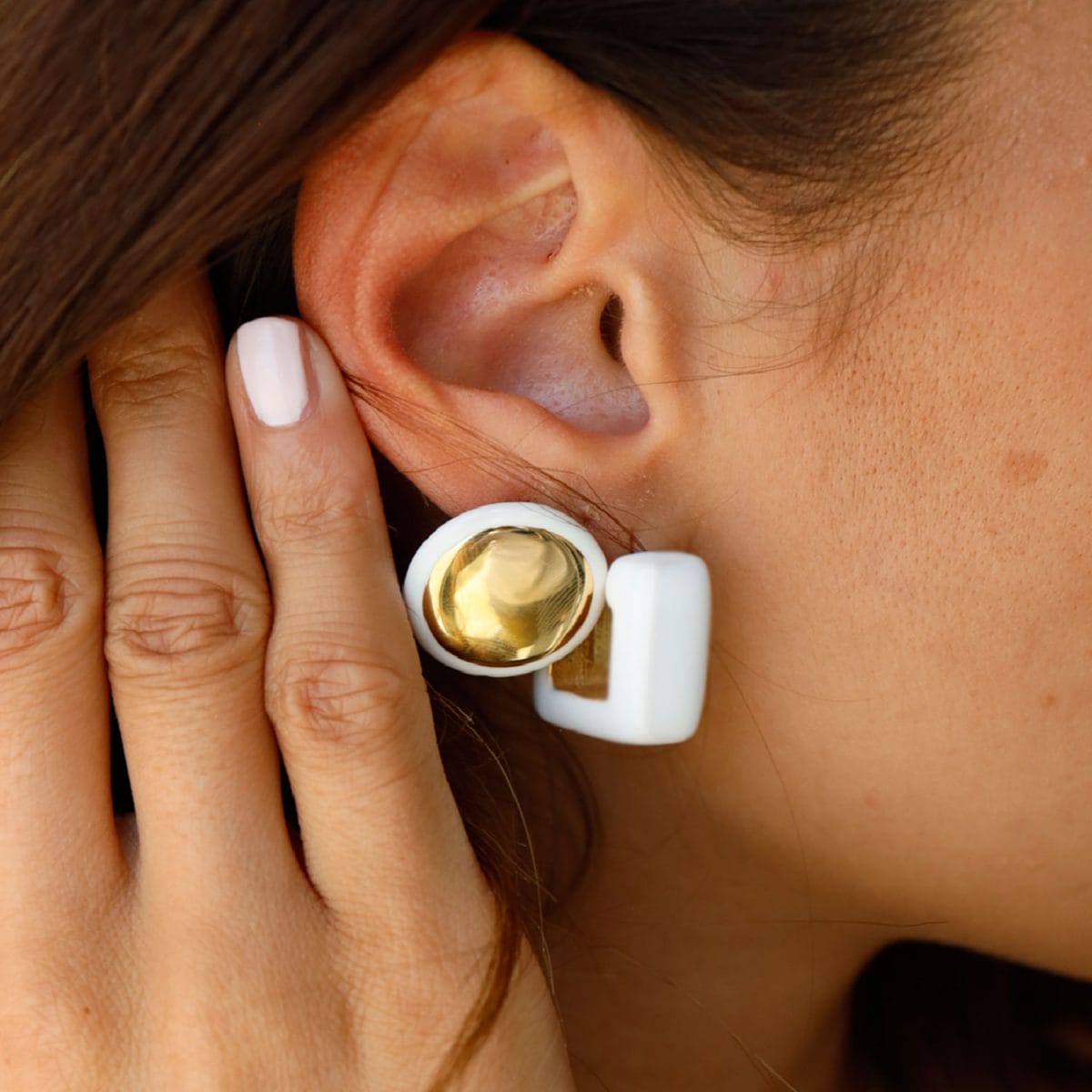 Disk White Yellow Earring