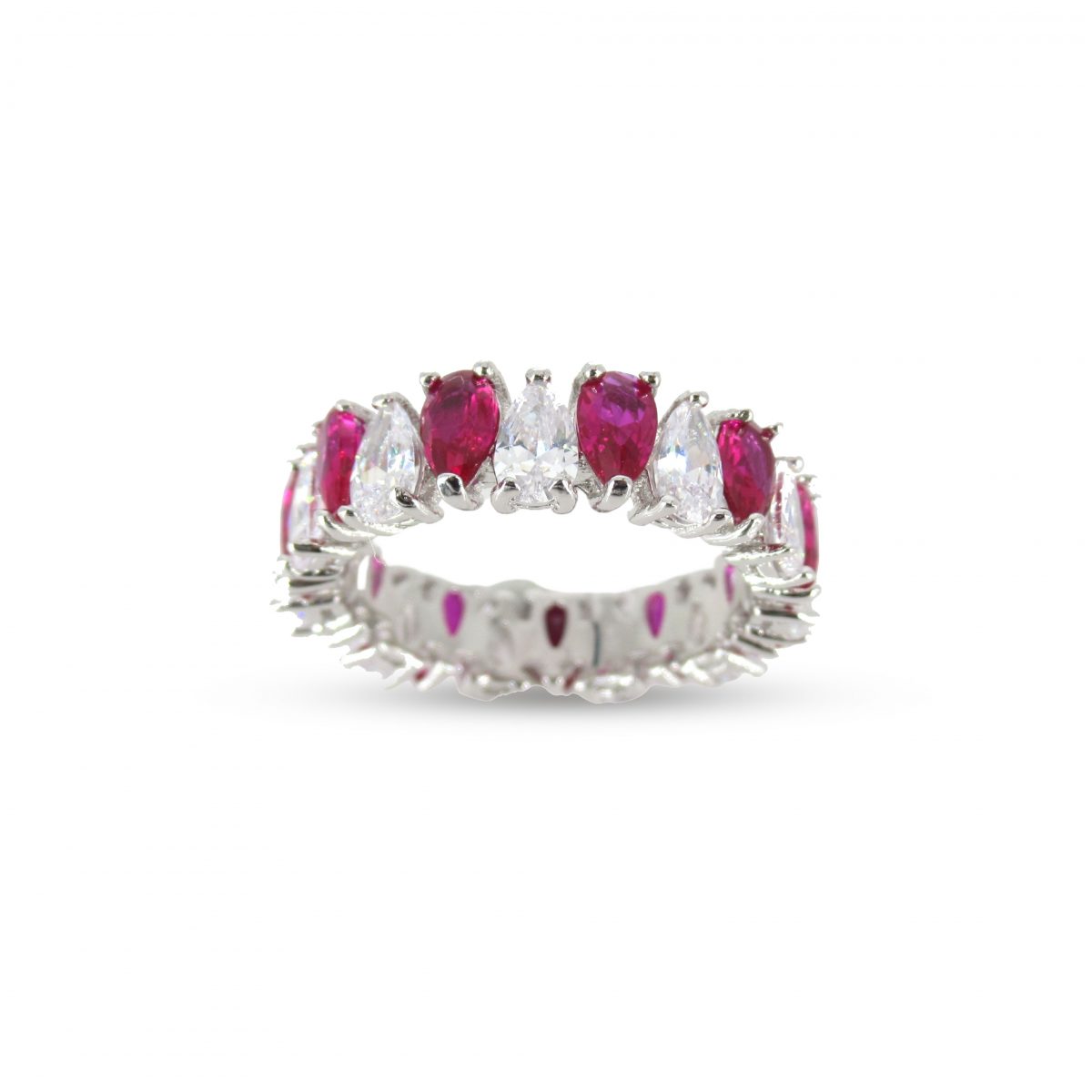 Red and White Eternity Silver Ring